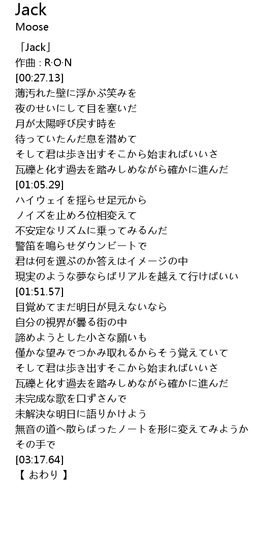 | [00:01.13] | 「Jack」 |