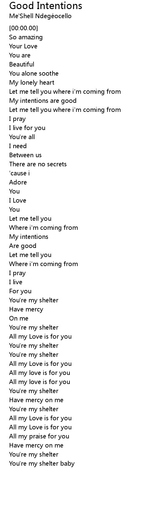 | [01:02.27] | My intentions are good |