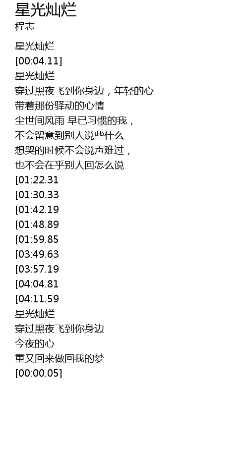 | [04:19.94][03:49.63][02:12.13] | 星光灿烂 |