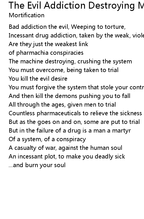 Bad addiction the evil, Weeping to torture, |