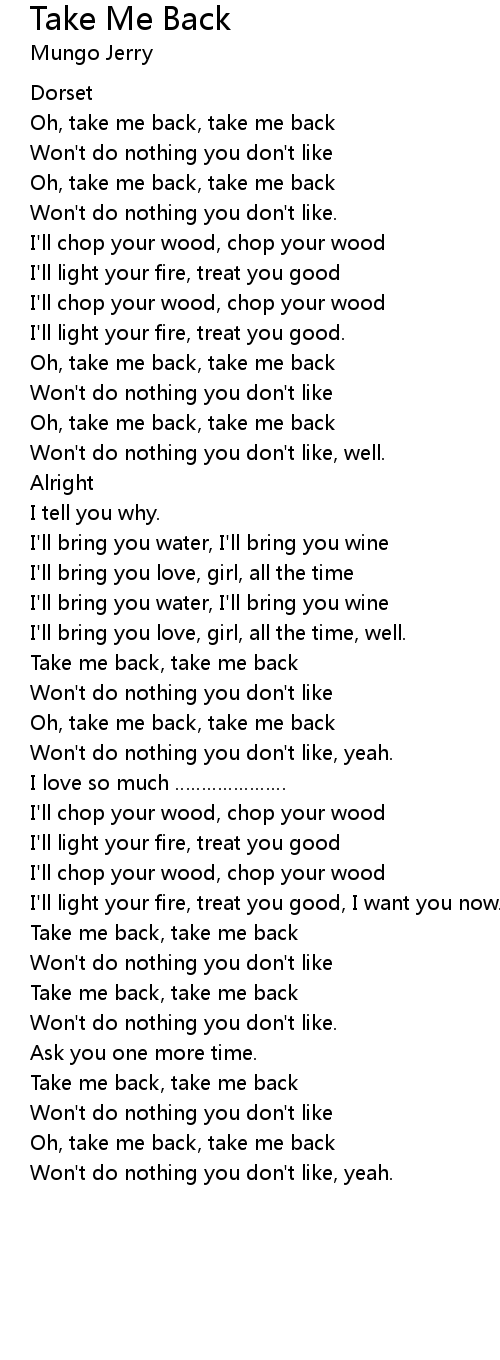 | Oh, take me back, take me back | |