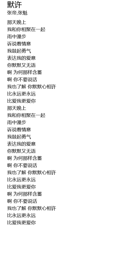 | [00:53.90] | 我也了解 你默默心相许 |