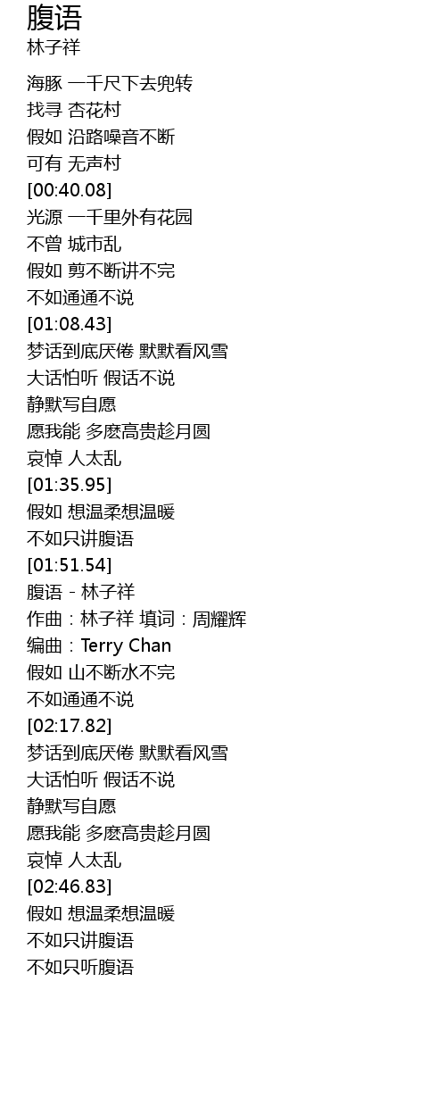 | [01:55.50] | 腹语 - 林子祥 |
