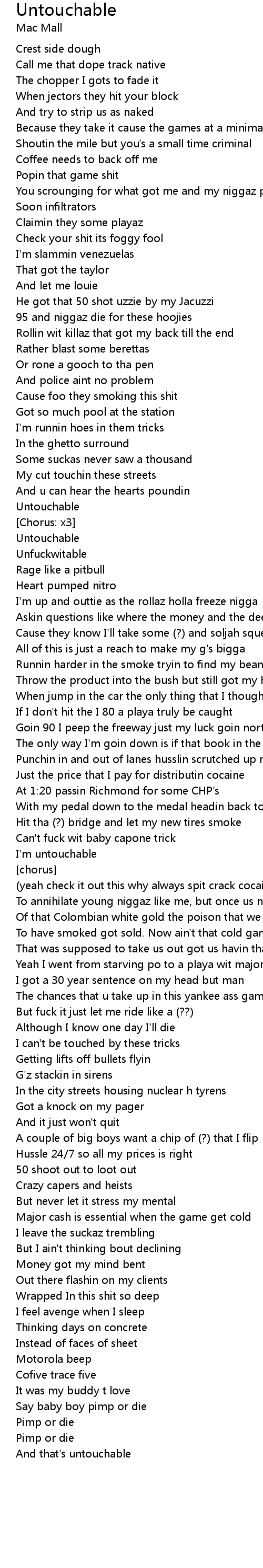 Yeah I went from starving po to a playa wit major papa untouchable)