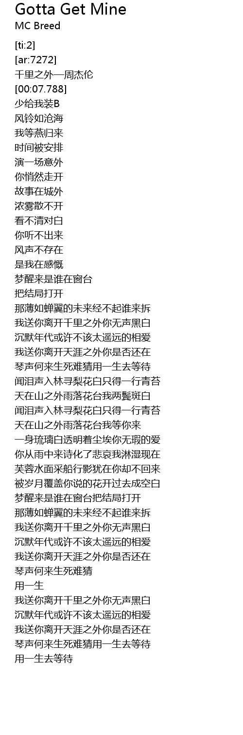 | [00:05.288] | 千里之外—周杰伦 |