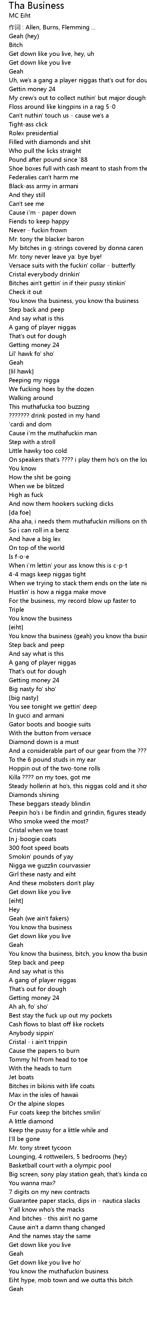 | Bitches ain't gettin' in if their pussy stinkin' | |