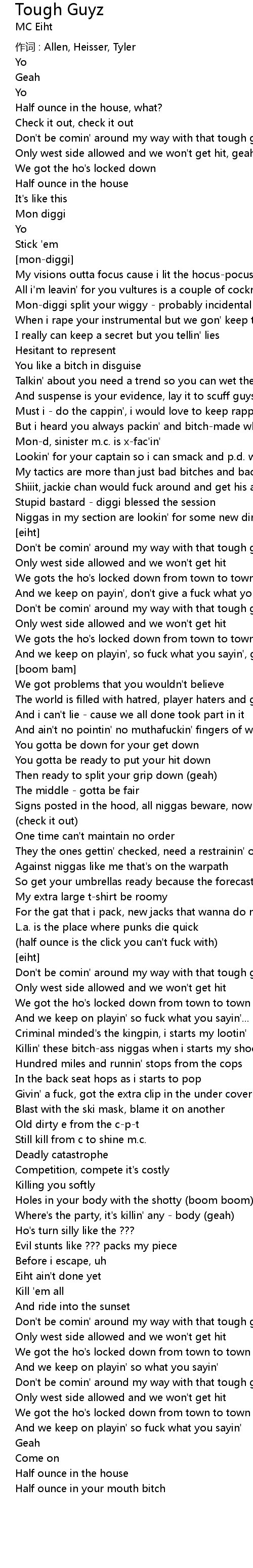 | 作词 : Allen, Heisser, Tyler | |