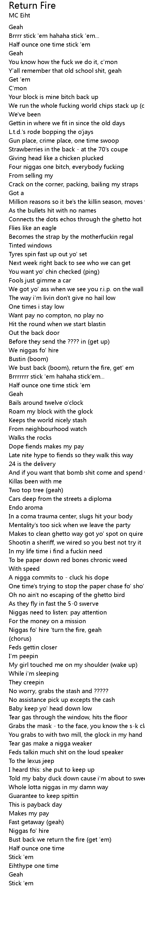 Niggas fo' hire 'turn the fire, geah |