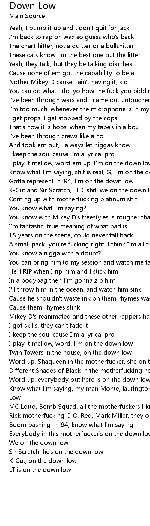 I play it mellow, word, I'm on the down low |