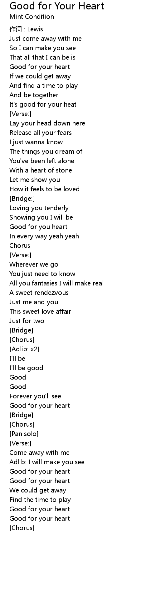 | Song | Good for Your Heart |