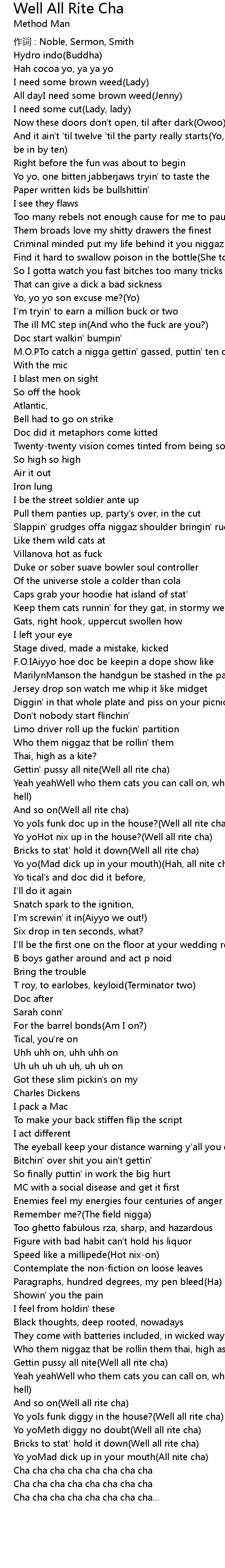 | Yo yoMeth diggy no doubt(Well all rite cha) | |