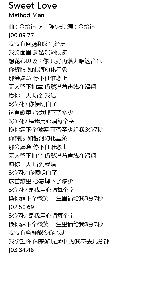 | [02:23.57] | 3分7秒 是我用心唱每个字 |