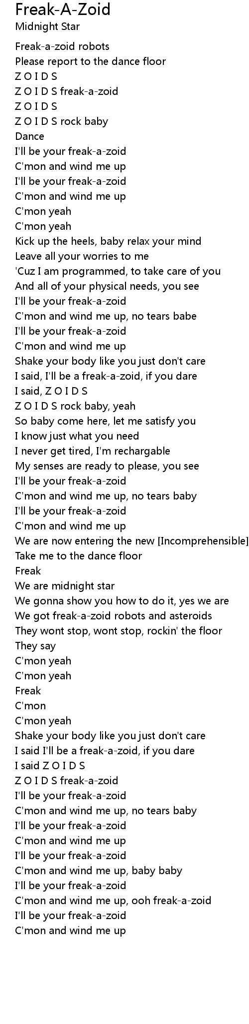 I'll be your freak-a-zoid |