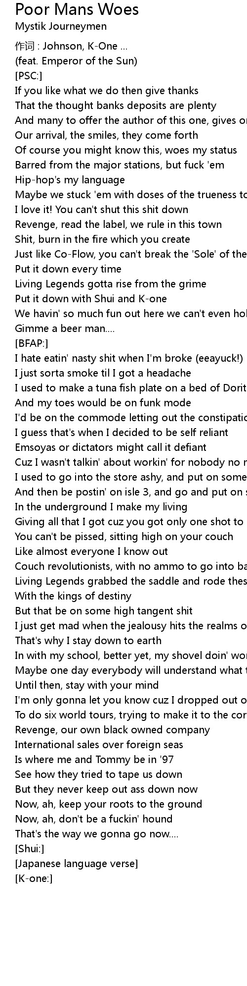 | Song | Poor Mans Woes |