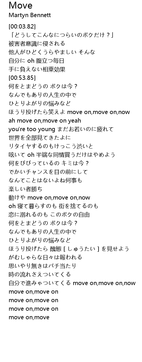 | [01:06.80] | ほうり投げたら笑えよ move on,move on,now |