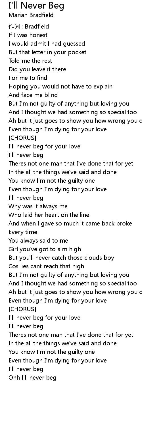| Ohh I' ll never beg |