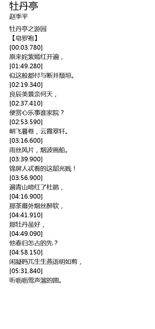 | [00:00.470] | 牡丹亭之游园 |