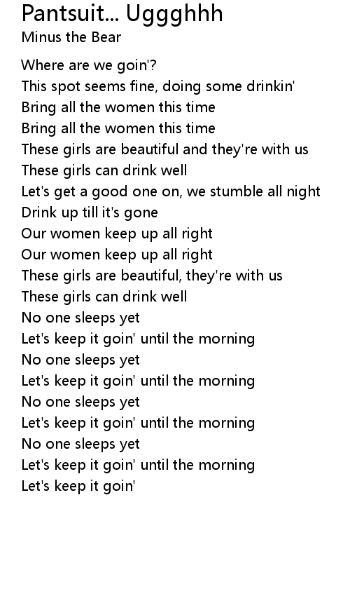 Let's get a good one on, we stumble all night |