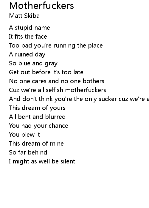 | And don't think you're the only sucker cuz we're all stupid motherfuckers | |