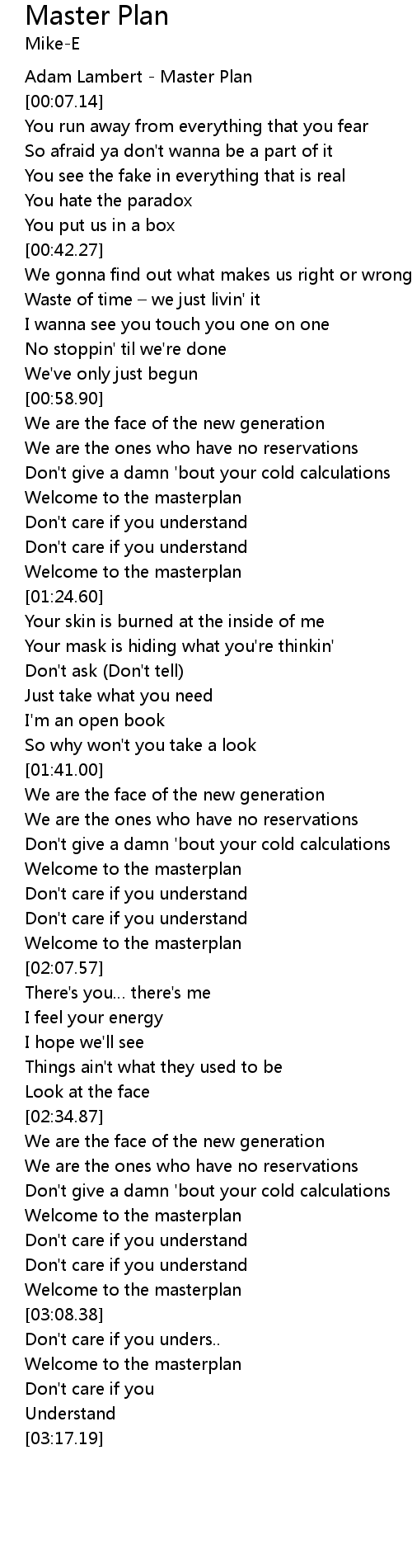 | [01:29.37] | Your mask is hiding what you're thinkin' |