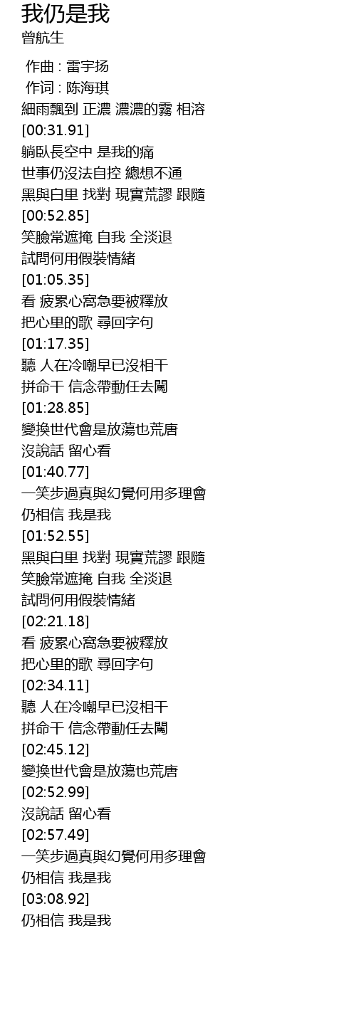 | [03:04.91] | réng xiāng xìn wǒ shì wǒ |