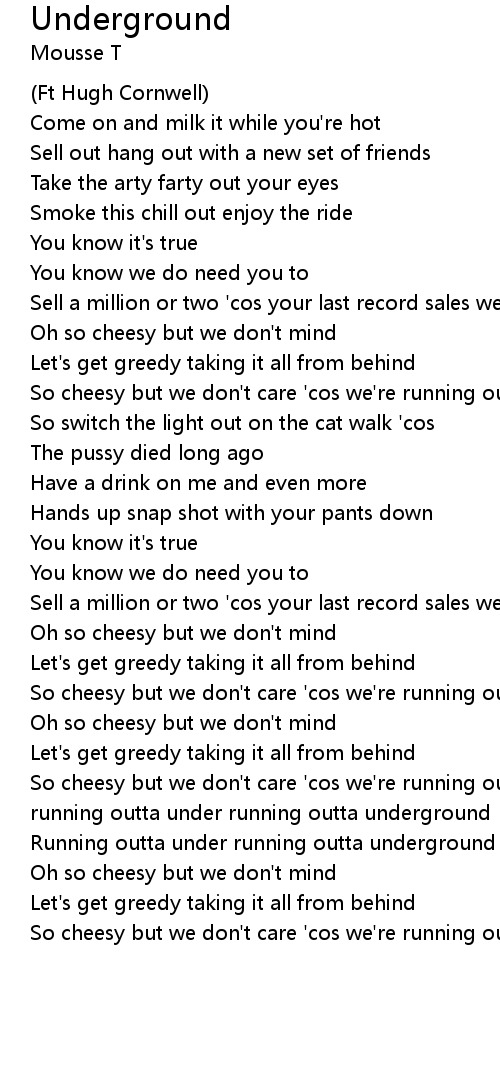 So cheesy but we don't care 'cos we're running outta underground 'cos we're running outta under running outta underground
