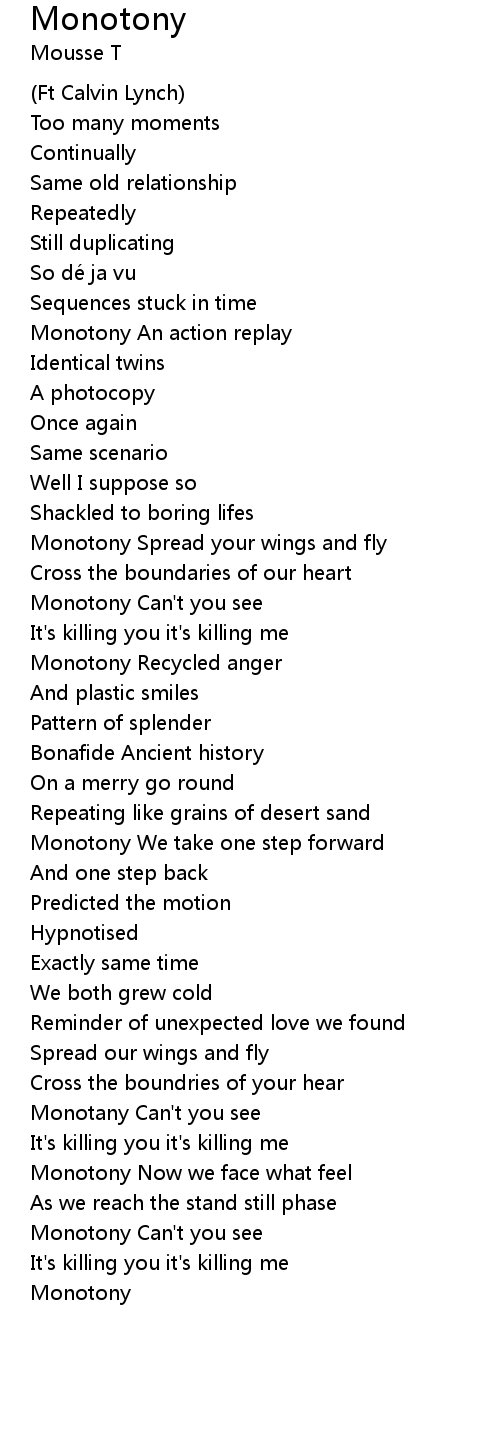 | Monotony Can' t you see | |