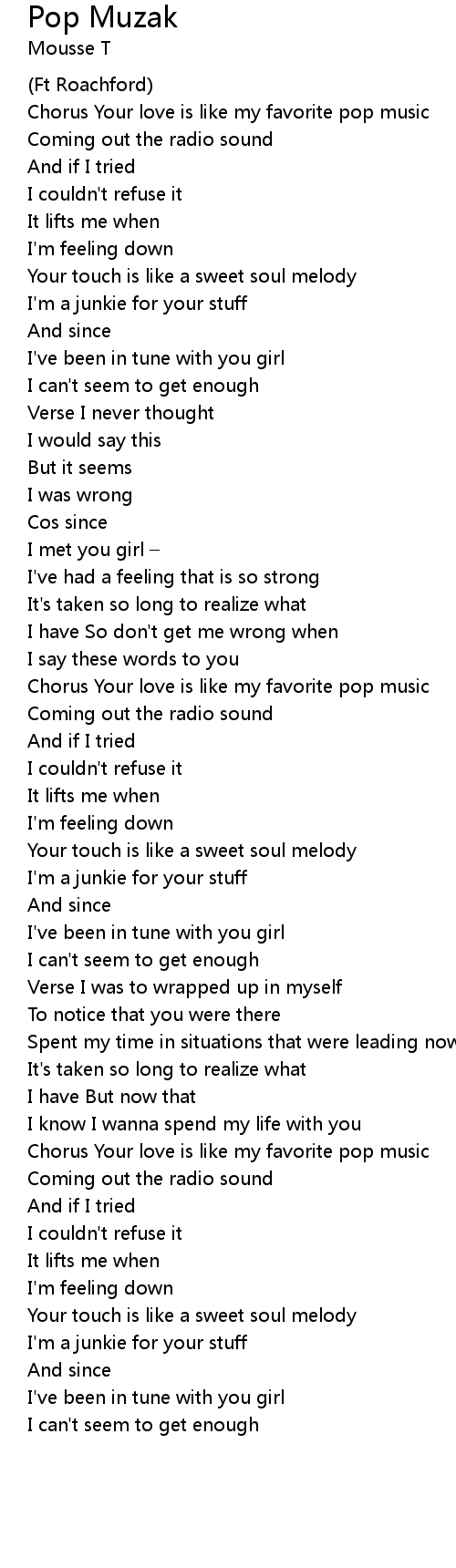 | Chorus Your love is like my favorite pop music | |
