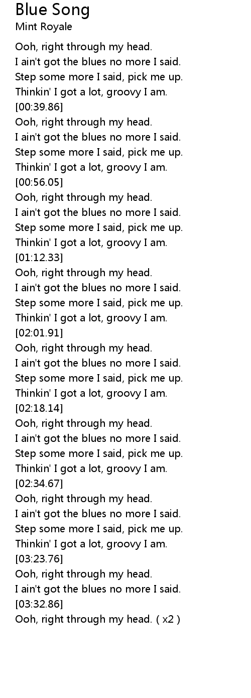| [00:44.86] | I ain't got the blues no more I said. |