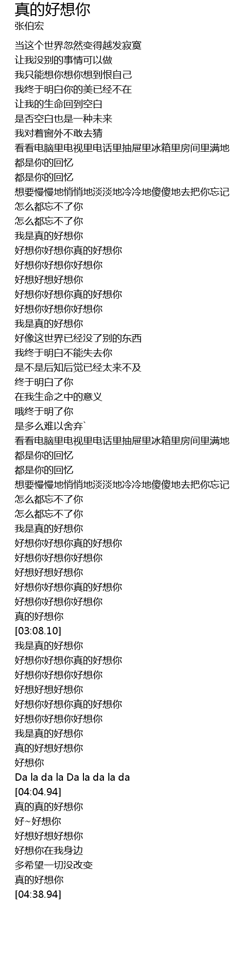 | [03:40.93] | hao xiang ni hao xiang ni zhen de hao xiang ni |