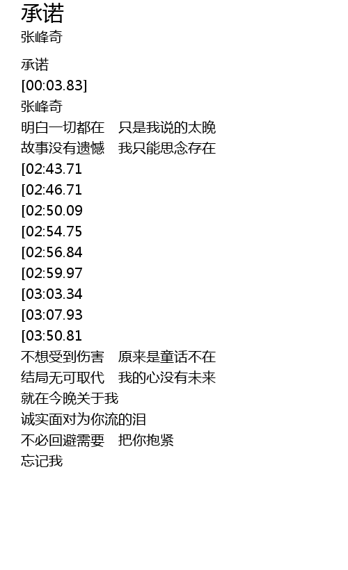 | [03:10.16][02:43.71][01:43.35][00:39.63] | 我想要什么,你给的承诺 |