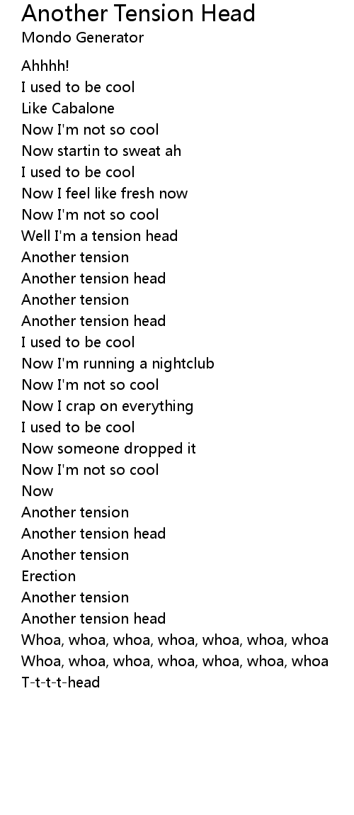 Well I'm a tension head |