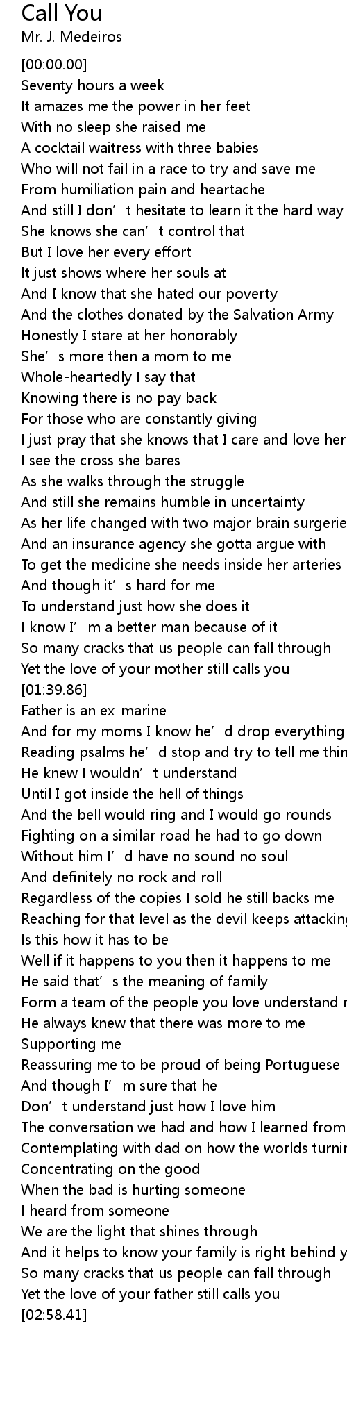 | [01:59.99] | And for my moms I know he’d drop everything |