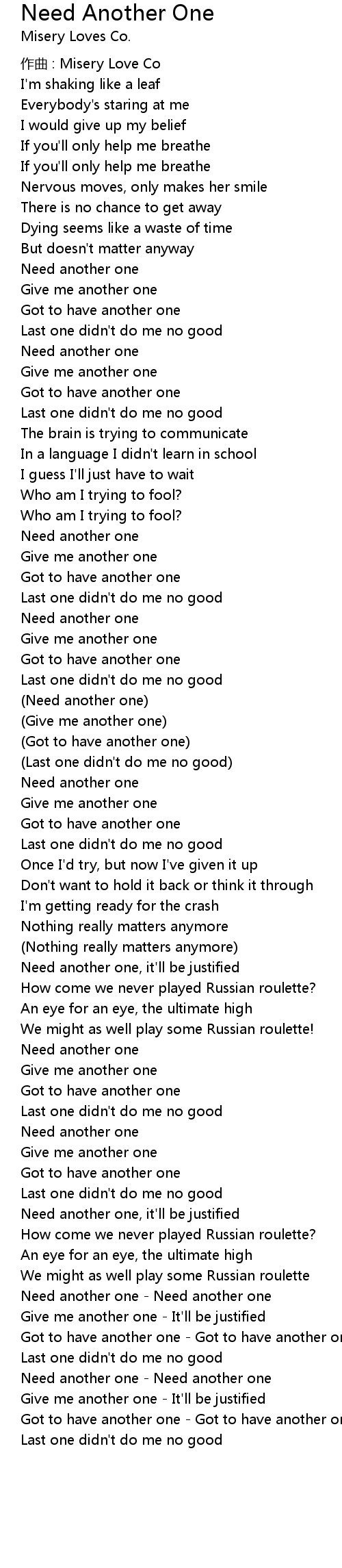| Song | Need Another One |