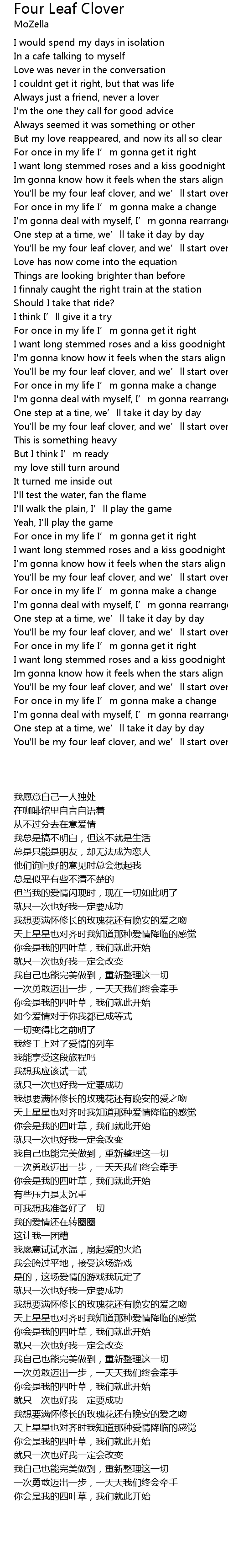 | [02:38.62] | You'll be my four leaf clover, and we’ll start over |