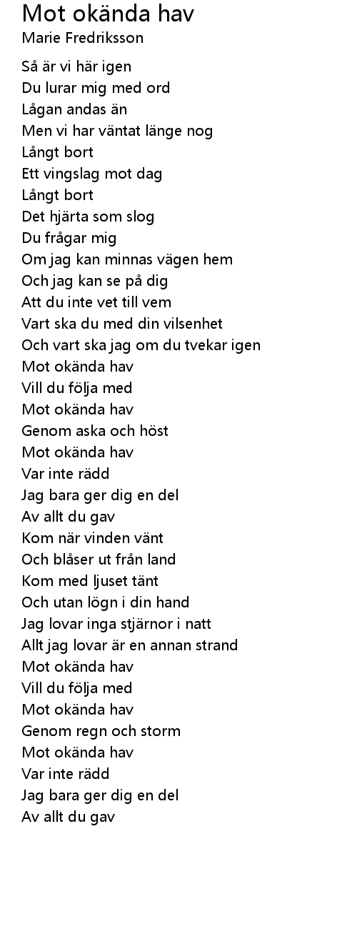 | Song | Mot okända hav |