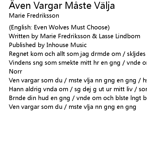 | Song | Även Vargar Måste Välja |
