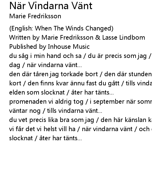 | Written by Marie Fredriksson & Lasse Lindbom | |