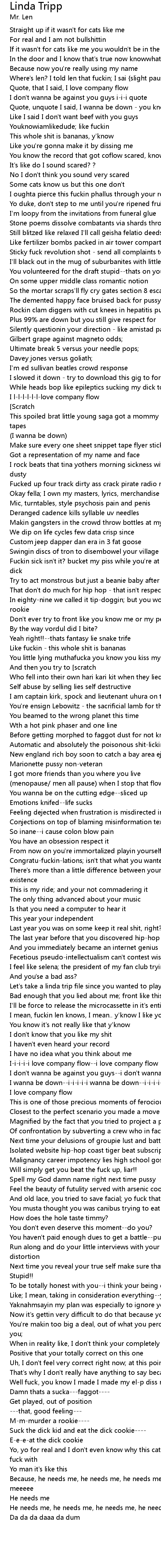 [00:11.39] Where's len? I told len that fuckin; I sai {slight pause}