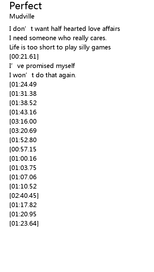 | [02:47.58][01:24.49][00:28.46] | It' s got to be perfect |