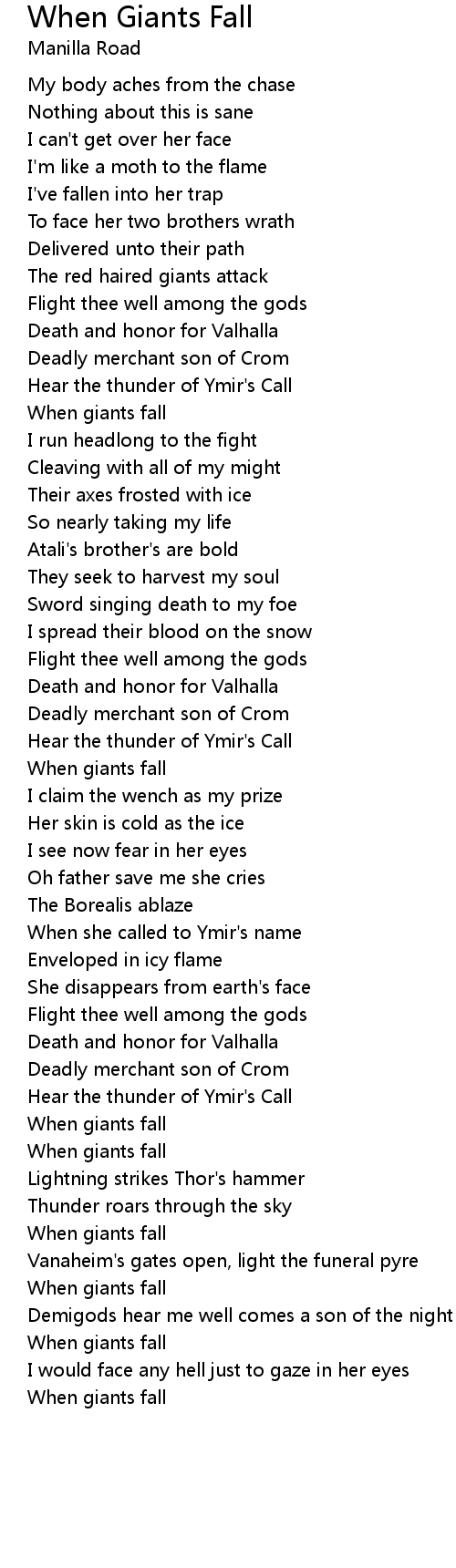 When Giants Fall Lyrics