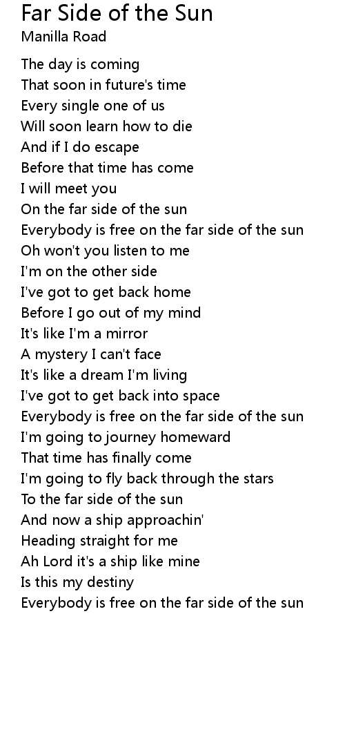 Everybody is free on the far side of the sun |