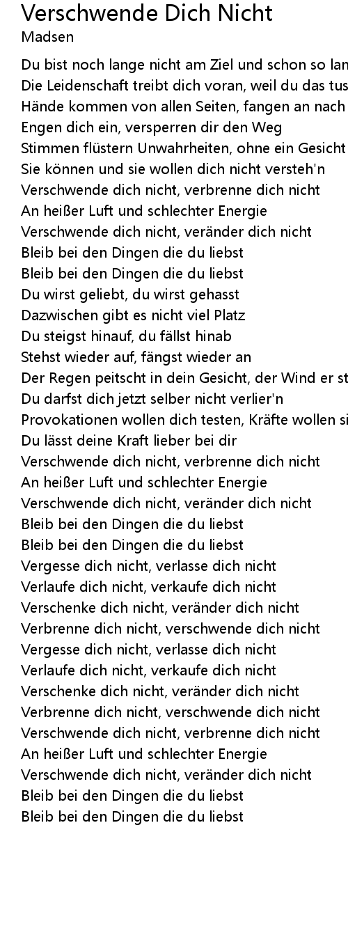 | Sie k nnen und sie wollen dich nicht versteh' n | |