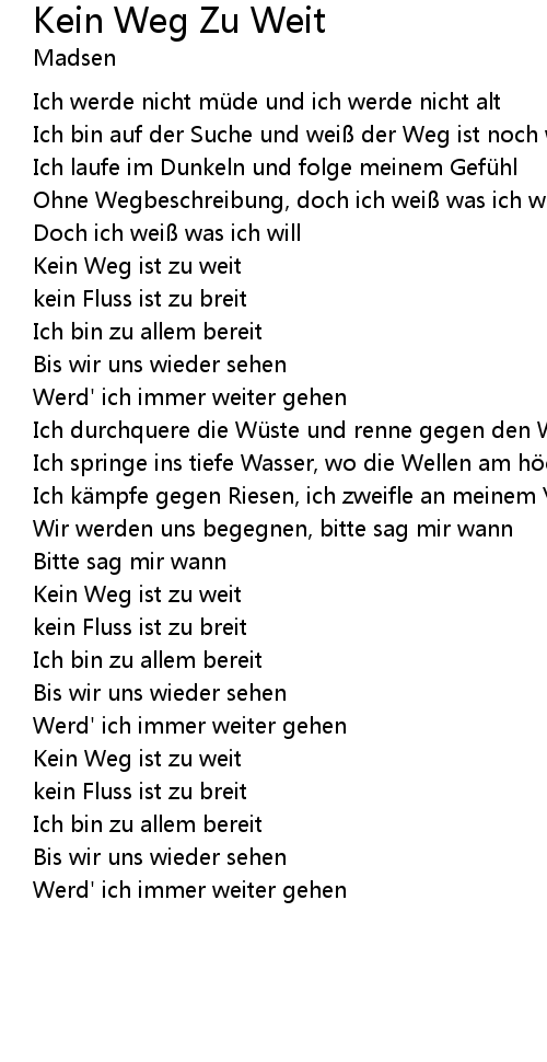 | Ich bin auf der Suche und wei der Weg ist noch weit | |