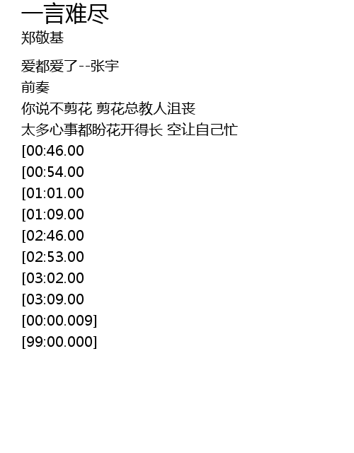 | [02:23.00][00:54.00] | tai duo you yu dou yin zi ji xin ruan nan li you nan ai |