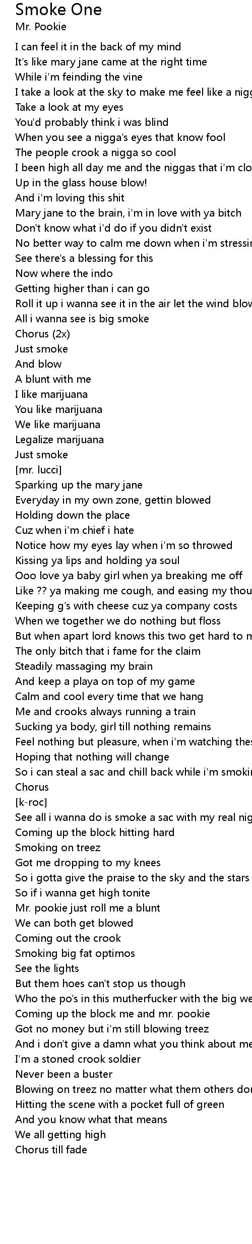Mr. pookie just roll me a blunt |