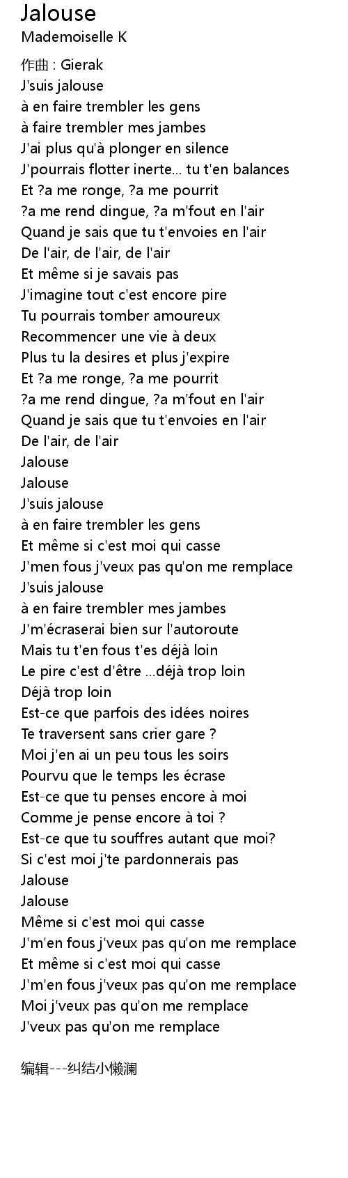| [00:00.00] | J' suis jalouse |
