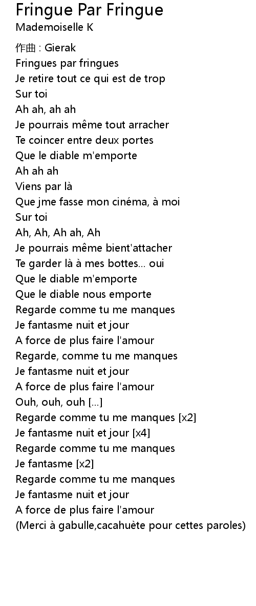 | Song | Fringue Par Fringue |