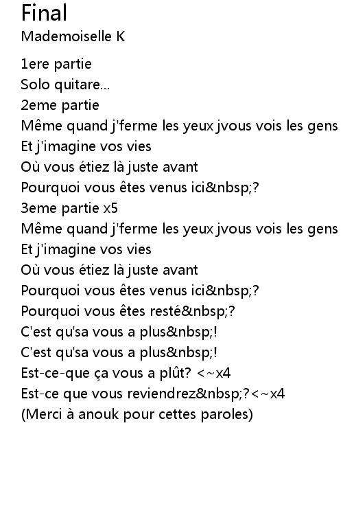 | Merci à anouk pour cettes paroles |