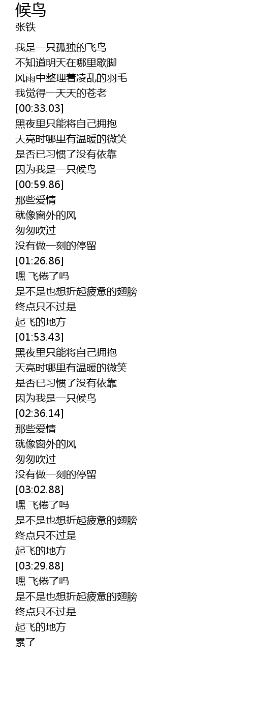 | [01:33.34] | 是不是也想折起疲惫的翅膀 |